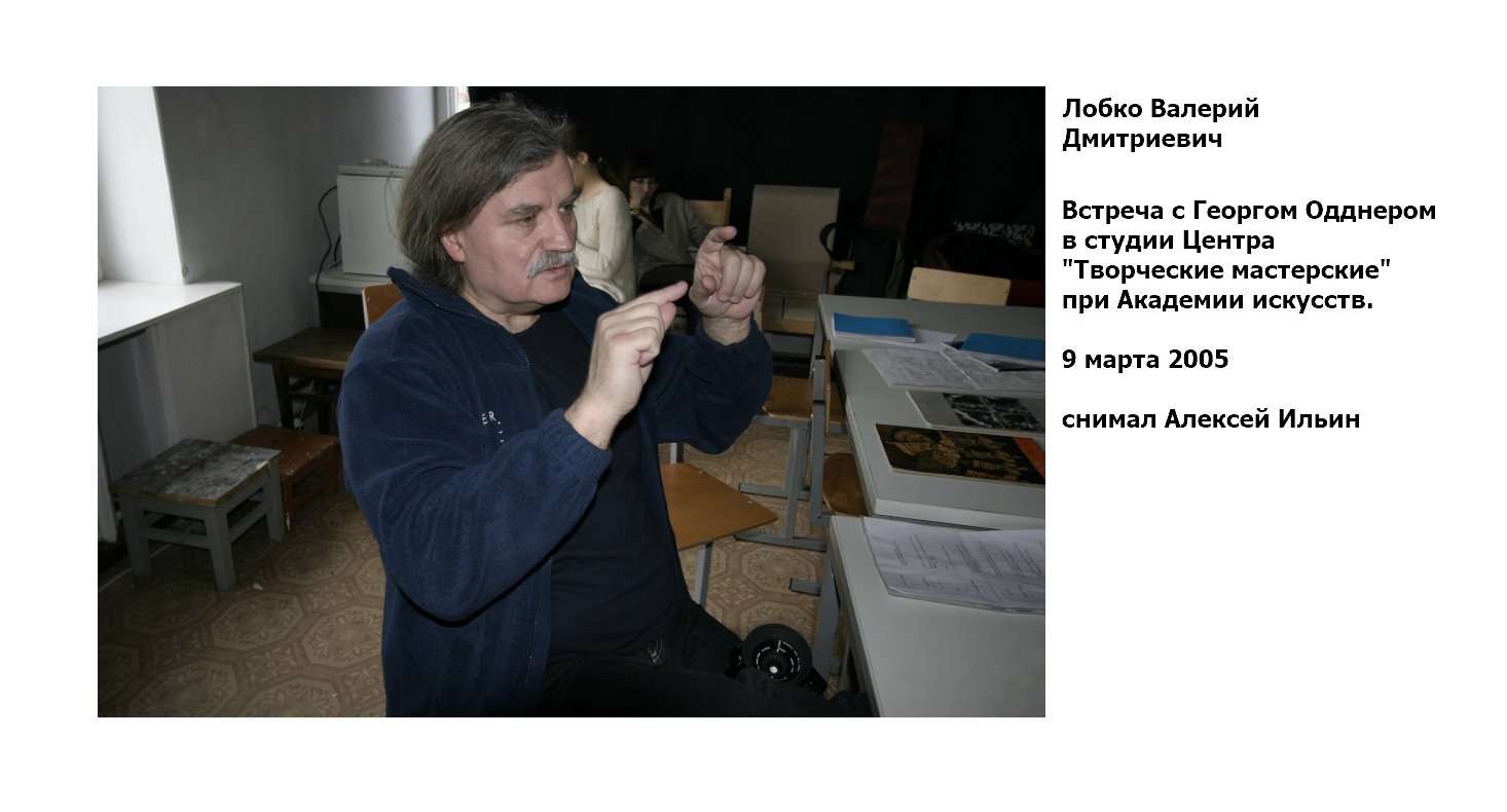 На уровне частных контактов мы общаемся с преподавателями и студентами, но в плане официальных мероприятий, увы, за год нам ничего не предложили. Большие надежды возлагаю на сайт Lobko.eu Он должен стать той самой коммуникативной средой. Помимо галереи работ, текстов и архивных материалов, на сайте планируется разместить форум. Уместно было бы продублировать туда ветку «Встреча с легендой», так как это — огромный пласт энциклопедической информации. Если зайти на папину страничку в Wikipedia, там можно найти ссылки на различные публикации в сети: http://ru.wikipedia.org/wiki/Лобко,_Валерий_Дмитриевич