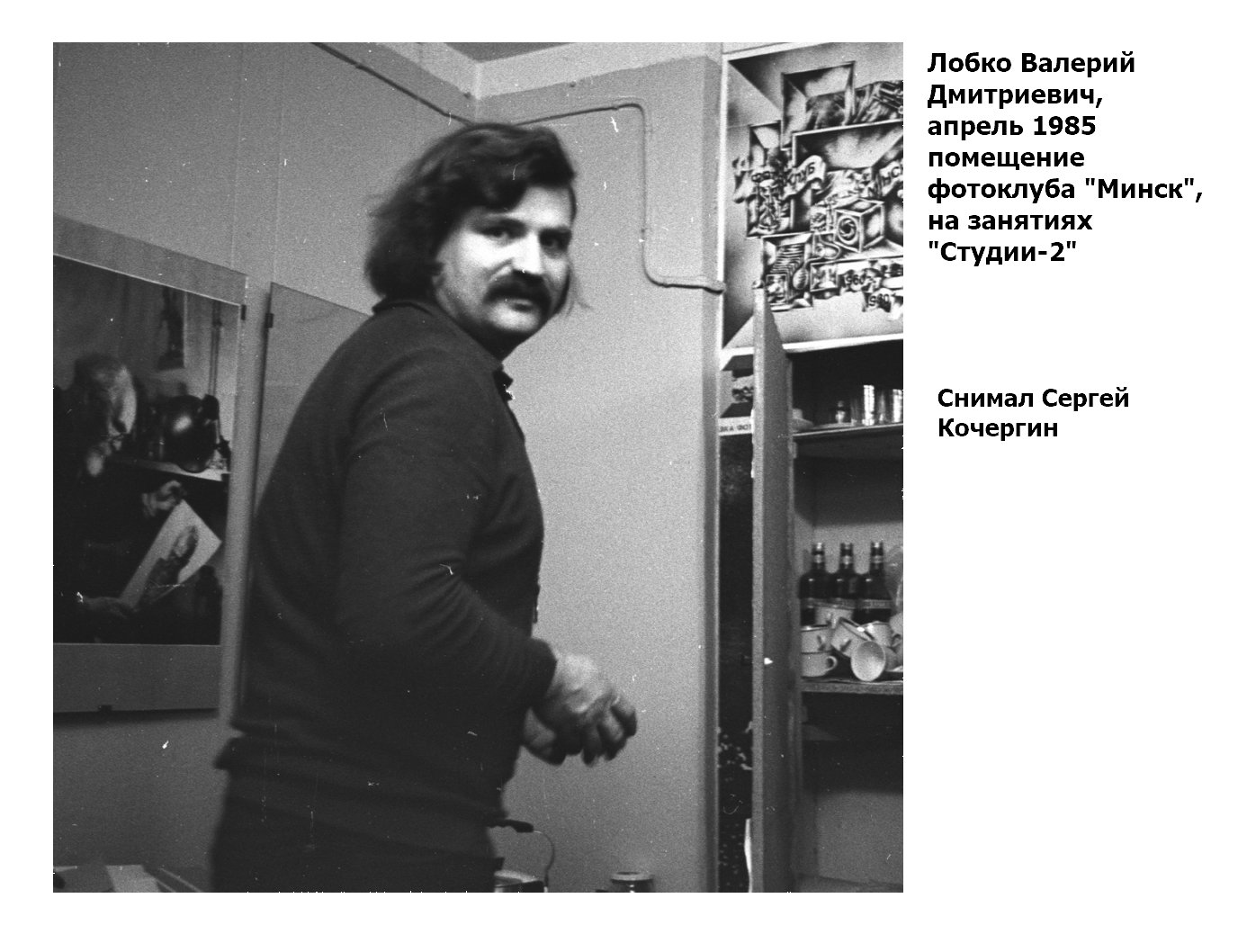 фотографВ 1972 году мне пришлось заменить Александра Сергеевича Дитлова на факультете общественных профессий в тогдашнем политехническом институте. Я пришел на ФОП. Мне тогда было 33 года. В аудитории было порядка 25 человек. Лаборант меня представил. И мы начали разговор. И тут возглас: «Расскажите о «Фотографике» ! Это был Валера Лобко. Вскоре после этого Валерий принес свои портреты и я предложил их показать в Клубе. Валера показал свои работы, всем понравилось, его приняли. И он очень активно влился в работу Клуба…