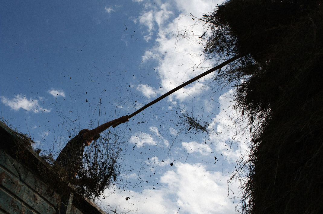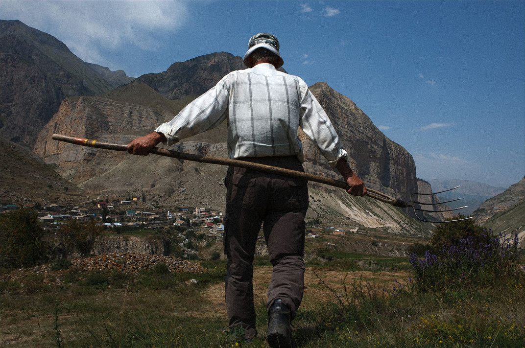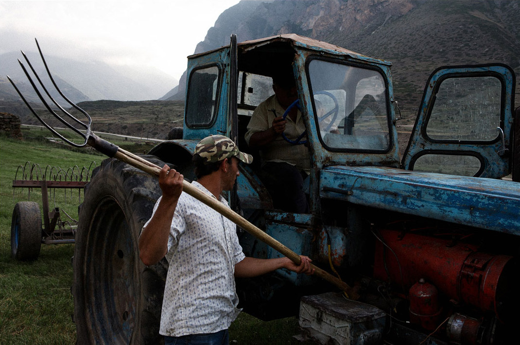 Работать приходится всем и очень много. Пока сезон, абсолютно все, мужчины, женщины, дети, независимо от возраста и состояния здоровья, работают в поле по 10 часов под палящим солнцем, косят и собирают траву для скота. Из инструмента — коса, вилы и старый трактор, который заводится только если ударить теми же вилами по карбюратору. Так здесь устроена жизнь: если не заготовить достаточно корма, зиму не пережить. Скотина для этих мест — практически единственный источник пропитания. Из-за особенностей ландшафта почти ничего не растёт, поэтому мясо, молоко, шерсть и мёд — это всё чем богата эта земля.